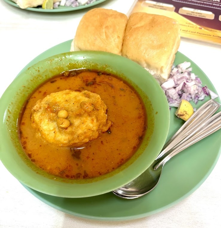After a short walk to make some space, we reached Mama Kane’s Swatchha Upahar Griha at 12:42 PM. Here, we went for Misal, Wada Usal, and—yes—another round of piyush. Both places share something special beyond taste: courteous, cooperative staff who serve food barefoot, reflecting old-school values and a deep emphasis on hygiene.